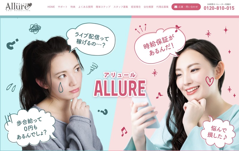 アリュール(ALLURE)は2006年設立、20年近くの運営歴を持つ大手チャットレディ代理店です。