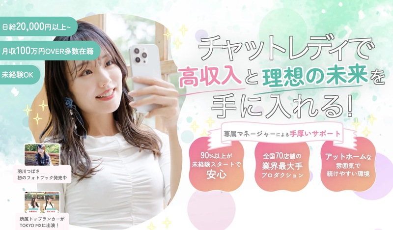 また一部店舗ではバーチャルチャットレディにも対応しており、完全に顔出しなしで稼げる環境も整っています。